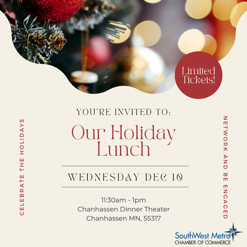 Join the SouthWest Metro Chamber for our Holiday Luncheon! Celebrate the year and network and engage with fellow chamber members!