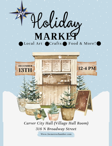 Celebrate the joys of the Holiday Season at the SouthWest Metro Holiday Market! Discover vendors of local arts, crafts, food, and more! Make this your indoor destination for fun, seasonally inspired shopping!