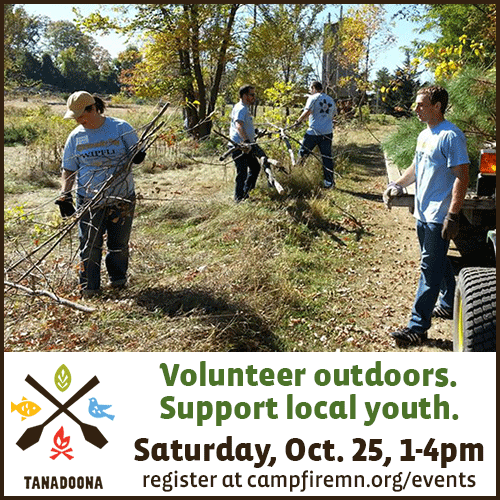 We're looking for 100 volunteers to help remove buckthorn at Tanadoona! This project is aimed at reducing erosion and ultimately improving area water quality in and around Tanadoona and Lake Minnewashta. Special age appropriate volunteer activities will be available for youth 6-10. More details and registration link are at www.campfiremn.org/events.