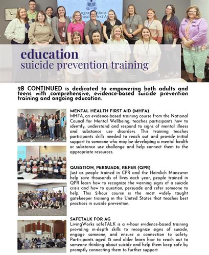 501c3 nonprofit organization with a mission to increase awareness of suicide prevention, mental health, and wellness through advocacy, education, and outreach in Brown, Carver, McLeod, Meeker, Nicollet, Renville, Sibley and Wright Counties of MN.