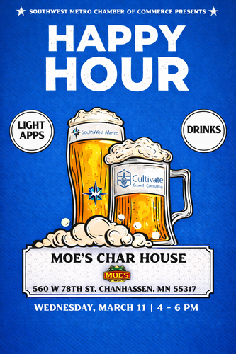 Unwind after work with the Southwest Metro Chamber of Commerce at our upcoming Happy Hour sponsored by Cultivate Growth Consulting!